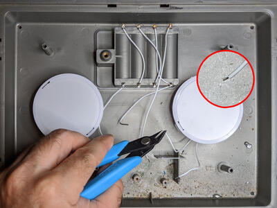 Using your wire cutter, cut all the wires off the old circuit board. Keep as much wire as you can attached to the stove by cutting the wire close to the old circuit board. |