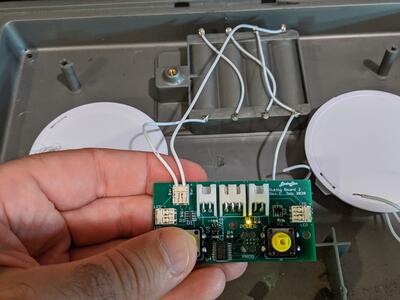 Under the cover you'll find the old circuit board we're replacing. The board shown in this photo does not have wire connectors; the wires are soldered directly to the circuit board. If your board has connectors, follow the installation instructions for connectorized boards instead. |
